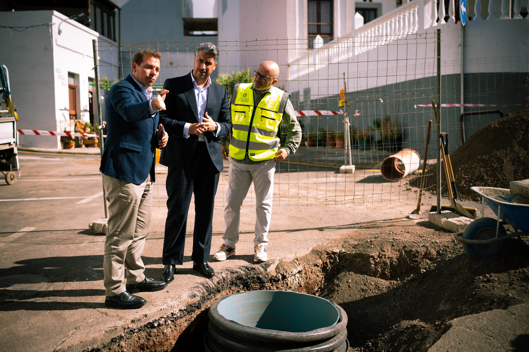 El alcalde del municipio, Luis Yeray Gutiérrez, visitó este martes la vía intervenida junto al concejal de Obras del Consistorio, Ángel Chinea, y el director gerente de Teidagua, Braulio Domínguez, para comprobar el avance de las obras y conversar con vecinos y vecinas del entorno sobre las mejoras que percibirán al término de estas actuaciones, que tendrán un coste cercano a los 40.000 euros.