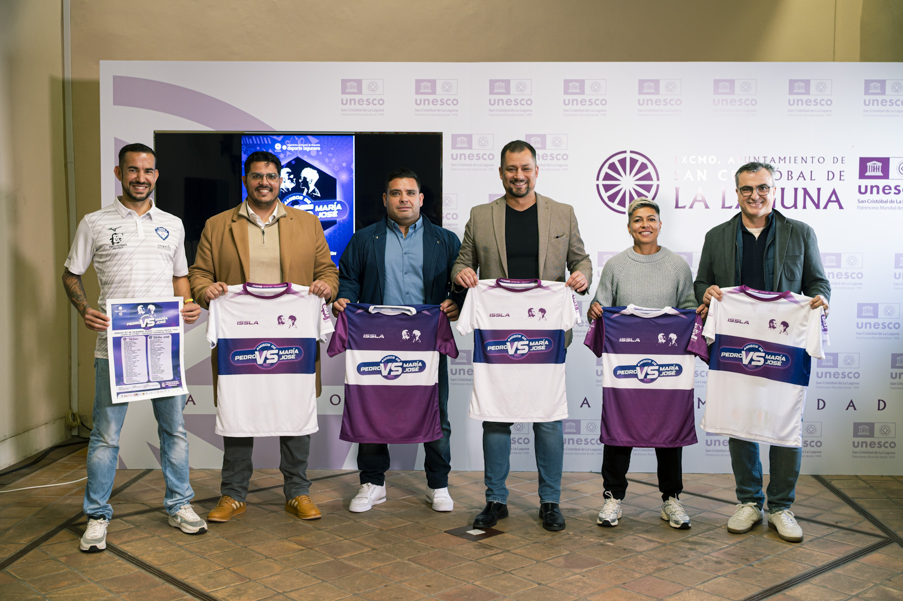 La Casa de los Capitanes del Ayuntamiento de San Cristóbal de La Laguna acogió este martes, 23 de diciembre, la presentación oficial de la decimotercera edición del partido de fútbol solidario ‘Amigos de Pedro Gutiérrez vs Amigos de María José Pérez’. La cita, que se celebrará el sábado 27 de diciembre, se presenta como una ocasión especial para mostrar solidaridad en pleno periodo navideño. En esta edición, la iniciativa destinará la recaudación íntegra a la Sociedad Española de Reumatología Pediátrica (SERPE).